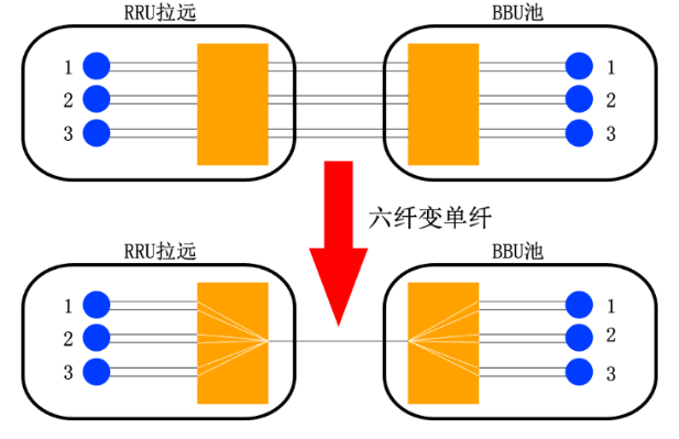 可以看到,該方案可以大量減少BBU-RRU之間的裸纖消耗,是解決4G前傳輸光纜不足時,縮短建設工期,簡化光纜規(guī)劃的最佳方案。