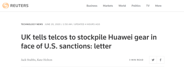 而路透社此前報道稱,NCSC的高級官員曾致信英國電信(BT)和沃達豐等國內電信運營商,要他們保持所有制造商的備件供應充足。NCSC的一位發(fā)言人表示,“NCSC為運營商提供了我們建議他們采取的一系列預防措施,同時我們正仔細考慮這些制裁措施對英國電信網絡的影響?!?
