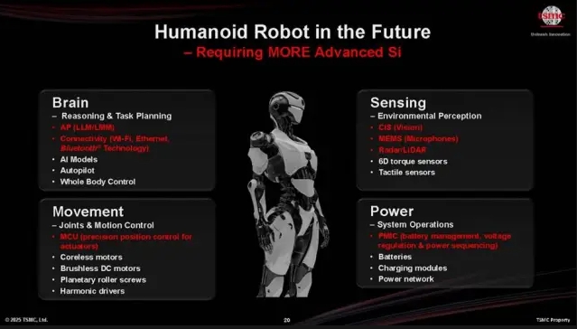 值得注意的是,臺(tái)積電指出盡管整體汽車市場(chǎng)疲軟,但自動(dòng)駕駛領(lǐng)域正在加速采用N4/N3和N6RF等先進(jìn)邏輯制程。此外,機(jī)器人技術(shù)將成為繼AI之后的下一個(gè)前沿領(lǐng)域,推動(dòng)對(duì)更先進(jìn)硅芯片的需求。