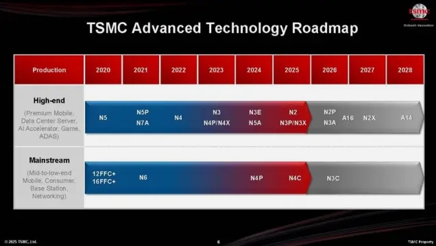 關(guān)于3納米制程,臺(tái)積電表示N3將成為高產(chǎn)長(zhǎng)效節(jié)點(diǎn),截至2025年4月已完成70多次流片。N3P按計(jì)劃于2024年第四季度進(jìn)入量產(chǎn)階段,其衍生產(chǎn)品包括面向客戶端CPU的N3X、提升性價(jià)比的N3C以及用于ADAS和自動(dòng)駕駛技術(shù)的N3A。N3A目前正在進(jìn)行最終缺陷改進(jìn),預(yù)計(jì)2025年通過(guò)AEC-Q100 Grade 1認(rèn)證。
