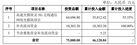 ICC訊 上海劍橋科技股份有限公司(以下簡稱“劍橋科技”或“公司”)發(fā)布關(guān)于部分募集資金投資項目延期的公告稱:根據(jù)此前公告顯示,劍橋科技發(fā)布2019年度非公開發(fā)行股票募集資金投資項目可行性分析報告,為了滿足光通信行業(yè)快速發(fā)展而帶來的光模塊市場需求,CIG劍橋科技擬非公開發(fā)行股票,總募集資金7.5億元人民幣,用于高速光模塊及5G 無線通信網(wǎng)絡(luò)光模塊項目和補(bǔ)充流動資金。其中,“高速光模塊及5G 無線通信網(wǎng)絡(luò)光模塊項目”擬使用募集資金6.47億元。