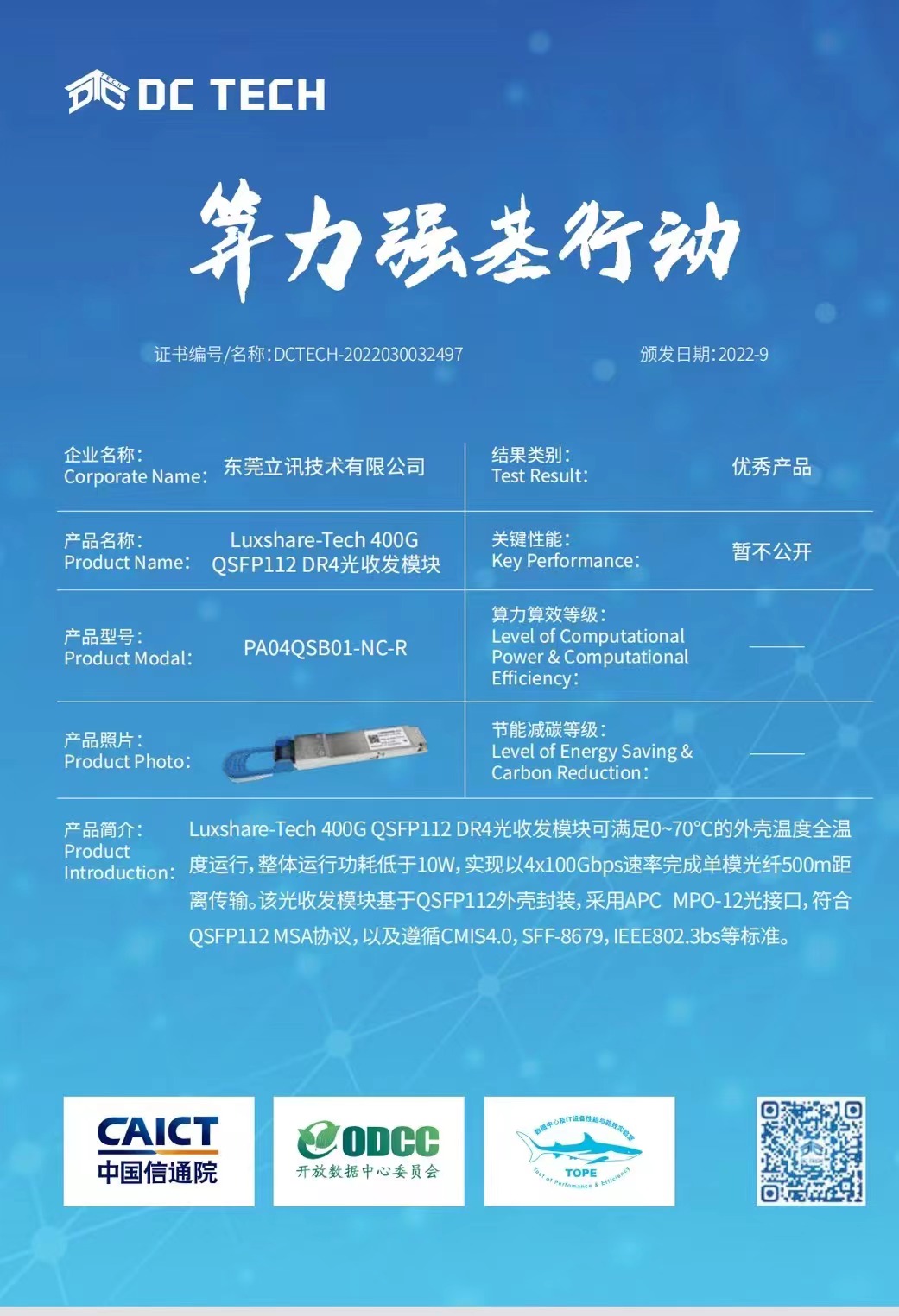 QSFP112 DR4光模塊產(chǎn)品喜獲本年度ODCC優(yōu)秀產(chǎn)品獎。