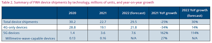 3. 2022年,FWA CPE出貨量預(yù)計將增長33%至2200萬臺,超過2020年的創(chuàng)紀錄出貨量。