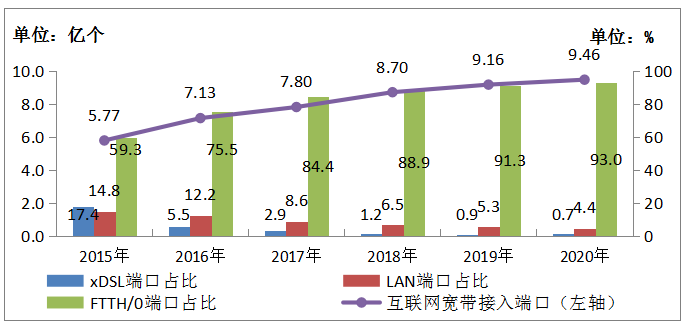 2015-2020年互聯(lián)網(wǎng)寬帶接入端口發(fā)展情況