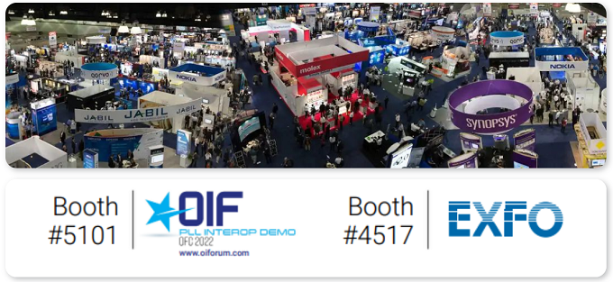 EXFO將在#4517號(hào)展臺(tái)展示光子集成電路、下一代收發(fā)器、400G/800G高速傳輸、光纖四大主題的內(nèi)容;將在OIF聯(lián)合展臺(tái)#5101進(jìn)行400ZR和FlexE測(cè)試解決方案互通性演示。