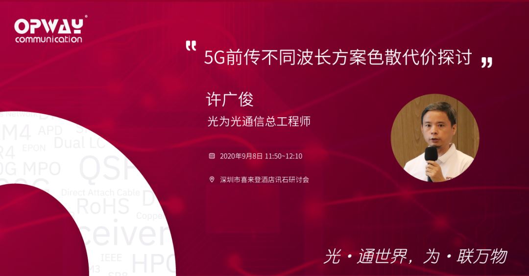 應(yīng)訊石邀請(qǐng),光為副總經(jīng)理兼總工程師許廣俊先生作為本次研討會(huì)的演講嘉賓,將與大家分享《5G前傳不同波長方案色散代價(jià)探討》,針對(duì)目前5G不同波長光纖傳輸前傳方式,包括CWDM, LWDM以及MWDM等,基于激光器、光模塊、光纖等的性能,進(jìn)行了相應(yīng)的仿真研究,并結(jié)合相應(yīng)的激光器芯片、光模塊、單模光纖等進(jìn)行了色散代價(jià)等傳輸實(shí)驗(yàn),與仿真結(jié)果進(jìn)行對(duì)比分析,為5G前傳各波長傳輸方案和不同應(yīng)用場(chǎng)景提供參考,敬請(qǐng)期待!
