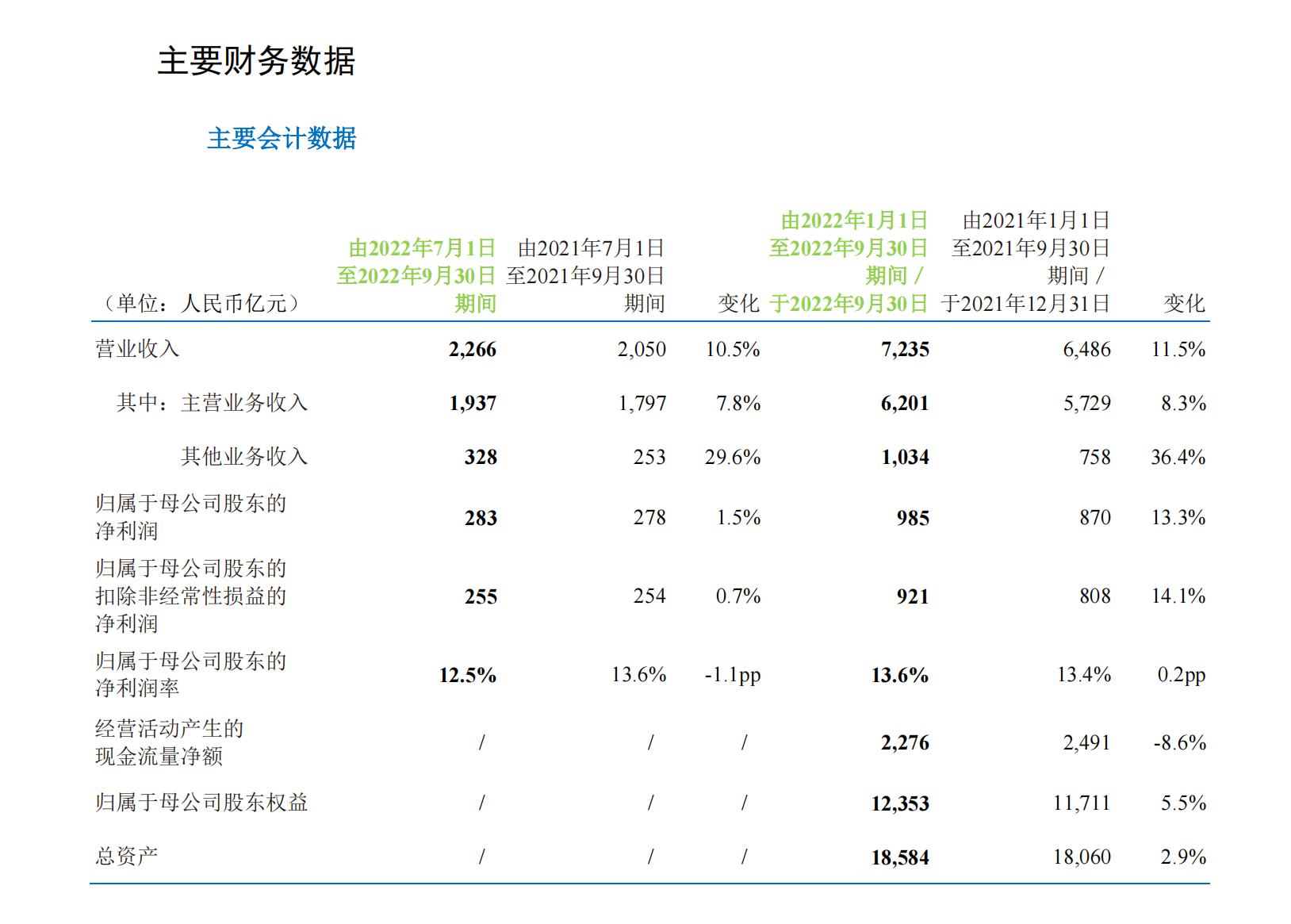 截至2022年9月30日,公司移動客戶總數(shù)約9.74億戶,前三季度凈增1715萬戶,客戶根基穩(wěn)固;其中,5G套餐客戶數(shù)達到5.57億戶,5G網(wǎng)絡(luò)客戶數(shù)達到2.92億戶,保持行業(yè)領(lǐng)先。前三季度,移動ARPU為人民幣50.7元,同比增長1.0%。公司將持續(xù)強化協(xié)同拓展運營,推動5G量質(zhì)并重發(fā)展,更好滿足客戶數(shù)字消費需求,努力實現(xiàn)全年移動ARPU穩(wěn)健增長。