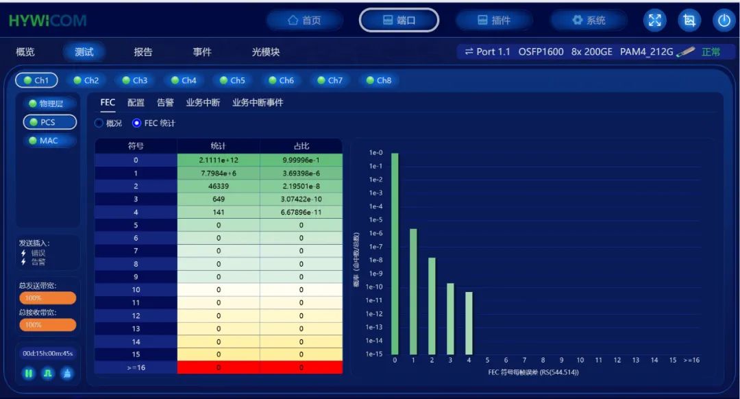 1.6T 光模塊在真實(shí)以太網(wǎng)流量下 長(zhǎng)時(shí)間測(cè)試的 FEC 分布