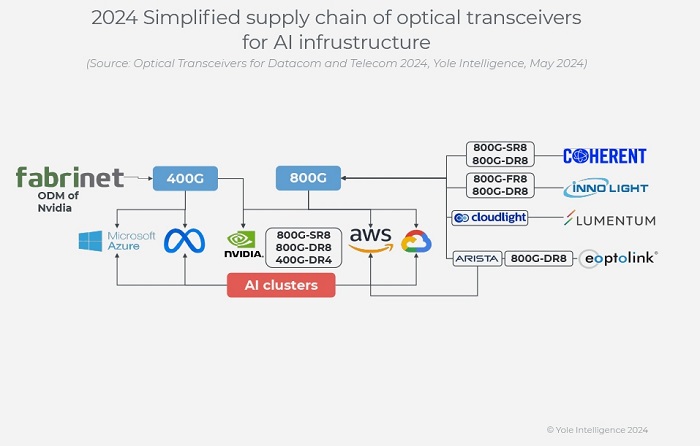 ICC訊(編譯:Nina)2023年初,由于數(shù)據(jù)中心需求減少和資本支出限制,光模塊市場(chǎng)前景黯淡。然而,從2023年3月起,在谷歌、亞馬遜和英偉達(dá)等超大規(guī)??蛻?hù)的推動(dòng)下,800G模塊的需求激增,導(dǎo)致訂單和出貨量大幅增長(zhǎng)。2023年晚些時(shí)候,微軟和Meta也增加了對(duì)400G模塊的需求,反映出人工智能驅(qū)動(dòng)的市場(chǎng)不斷擴(kuò)大。供應(yīng)商通過(guò)提高生產(chǎn)能力和確保原材料安全,為800G和400G細(xì)分市場(chǎng)的收入大幅增長(zhǎng)做好了準(zhǔn)備。