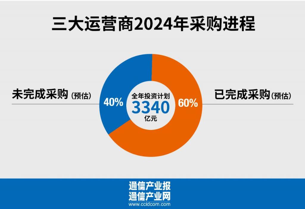 摘要:目前,三大運(yùn)營(yíng)商 2024 年集采已進(jìn)行到四分之三的時(shí)間進(jìn)程。按照年初投資預(yù)算 3340 億元,上半年三大運(yùn)營(yíng)商共完成 1351 億元,那么下半年剩余 1989 億元近全年 60% 的投資預(yù)算是否會(huì)在年底幾月加速兌現(xiàn)?