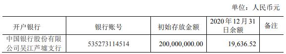 截至 2020 年 12 月 31 日,本公司募集資金在銀行賬戶的存儲情況如下: