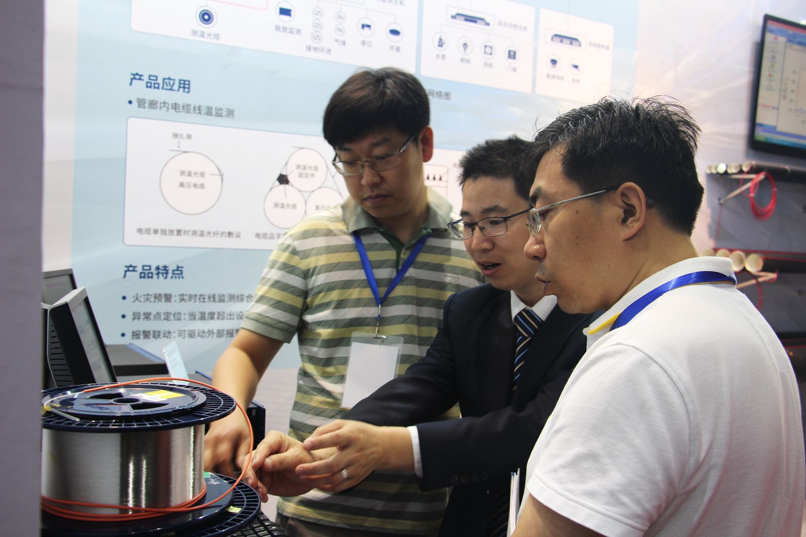 長飛公司此次展會重點推出的光纖傳感系統(tǒng)之分布式光纖測溫系統(tǒng),能對管廊內(nèi)的電纜運行狀態(tài)進行實時監(jiān)測,為有效地預防事故災害的發(fā)生提供有力保障,是管廊綜合監(jiān)控系統(tǒng)中不可或缺的一部分。該系統(tǒng)基于電力電纜監(jiān)控中心系統(tǒng)平臺,設(shè)置了光纖測溫主機、測溫光纜和其他相關(guān)設(shè)備。測溫主機實現(xiàn)對監(jiān)測數(shù)據(jù)的采集、分析及上報工作,測溫光纜實現(xiàn)對管廊內(nèi)電纜線溫監(jiān)測及環(huán)境溫度的監(jiān)測,能有效預警火災、異常點定位、報警聯(lián)動、數(shù)據(jù)分析、遠程訪問等。相對于普通傳感測溫設(shè)備,光纖測溫響應速度更快,穩(wěn)定性更好,誤報率極低,不受電磁干擾,而且能長距離監(jiān)測,使用壽命長,也易于維護。長飛展臺還模擬了綜合管廊現(xiàn)場測溫演示方案,展品一經(jīng)展出,便吸引了廣大商家及專業(yè)觀眾前來參觀咨詢,現(xiàn)場十分活躍。