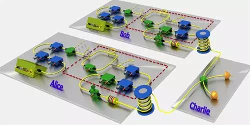 讀者朋友可能要問了,Charlie作為探測器,一旦被攻擊了,敵人不還是能知道發(fā)送的信息嗎?這就要說到這個(gè)協(xié)議的巧妙之處了。Alice或Bob除了擁有一套用來發(fā)送光子的系統(tǒng),還有一套虛擬系統(tǒng),這兩個(gè)系統(tǒng)之間存在糾纏。Alice將光子發(fā)送出去的時(shí)候,并不知道自己發(fā)出去的是什么態(tài),只是把虛擬系統(tǒng)進(jìn)行保存,直到Charlie宣布了Bell測量結(jié)果,Alice再去測量虛擬系統(tǒng),從而知曉剛才自己發(fā)送的光子態(tài)。自始至終,Charlie啥信息也得不到。