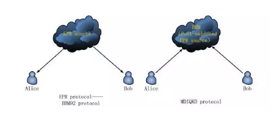 我們知道,BB84協(xié)議的提出者Bennett和Brassard以及康奈爾大學(xué)的Mermin在原本BB84協(xié)議思想和測量方式的基礎(chǔ)上,利用糾纏資源,提出了新的BBM92協(xié)議,它與BB84協(xié)議等價(jià)。傳統(tǒng)的BBM92協(xié)議是利用一個(gè)糾纏源向分隔兩地的接收端(研究人員稱兩個(gè)接收端分別為Alice和Bob)發(fā)送一對(duì)糾纏光子對(duì),這樣,兩地共享一對(duì)糾纏光子,然后進(jìn)行測量。但是恐怖的是,Alice和Bob這兩個(gè)探測器如果不安全了、被敵人控制了怎么辦?那時(shí)候研究人員只能看到敵人想讓我們看到的信息,或者干脆信息泄露(與針對(duì)光源漏洞的攻擊實(shí)現(xiàn)難度較大不同,有些針對(duì)探測器漏洞的攻擊方案已經(jīng)成功進(jìn)行了實(shí)驗(yàn)演示)。