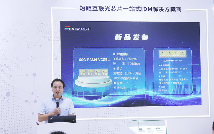 例如短距離傳輸方面,本次新發(fā)布的100G PAM4 VCSEL和PD在帶寬、RIN等關(guān)鍵特性與行業(yè)TOP持平并嚴(yán)格按照GR468標(biāo)準(zhǔn)完成了可靠性認(rèn)證。送樣客戶反饋驗(yàn)證性能優(yōu)秀,滿足100m OM4傳輸場(chǎng)景良率水平高。此外,公司50G PAM4 VCSEL芯片已經(jīng)向TOP10光模塊客戶批量發(fā)貨,性能一致性和可靠性均獲得客戶好評(píng)。