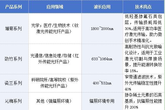 飛瓴光電依托武漢工程大學光電材料制備技術工程研究中心,首次展出君鑒系列摻氟石英產品,覆蓋從紫外到紅外的全波長應用: