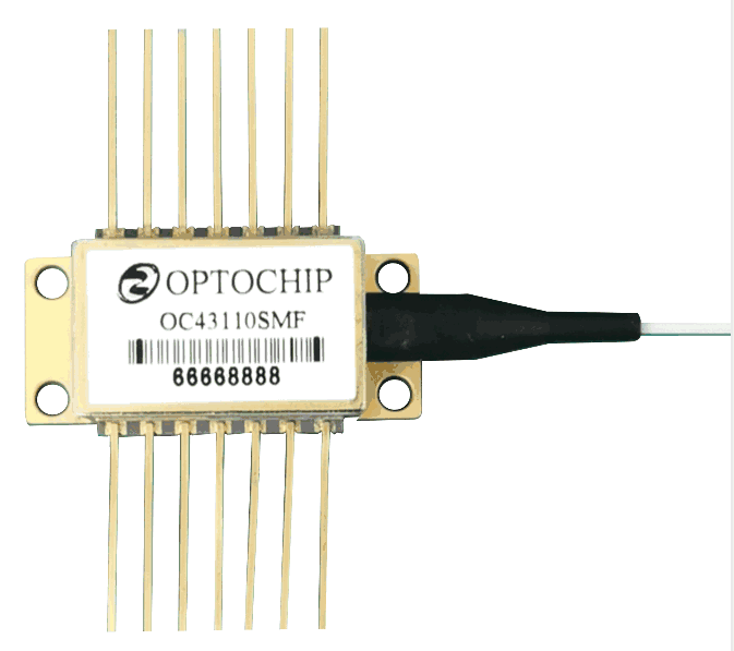 由針對(duì)傳感器光源用的窄波段和全C可調(diào)激光器芯片封裝而成的14針蝶形器件,芯片采用量子阱+光柵結(jié)構(gòu),內(nèi)置半導(dǎo)體制冷器,標(biāo)準(zhǔn)封裝工藝實(shí)現(xiàn)蝶形(Butterfly)尾纖式封裝。 提供各種波長(zhǎng)DFB激光器來(lái)料代工或定制化蝶形封裝。