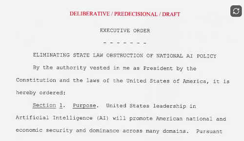 這項(xiàng)題為"消除州法律對(duì)國家級(jí)人工智能政策的阻礙"(Eliminating State Law Obstruction of National AI Policy)的草案命令指出,為了贏得全球人工智能競賽,美國公司必須能夠自由創(chuàng)新,而不受各州對(duì)技術(shù)各方面制定的一系列法規(guī)的束縛。草案指出,加利福尼亞州和科羅拉多州已經(jīng)實(shí)施了限制人工智能的法律。草案稱,這種拼湊式的監(jiān)管框架將迫使所有人遵守限制最嚴(yán)的州的規(guī)定。