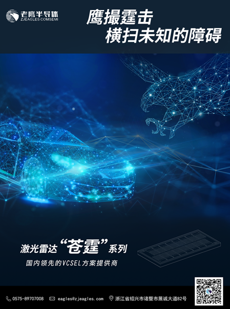 激光雷達的上車熱也倒逼上游器件廠商不斷打磨產(chǎn)品、精進技術(shù)。在激光雷達上最關(guān)鍵的發(fā)射端,VCSEL(垂直腔面激光器)以尺寸小、量產(chǎn)成本低、溫漂低、易于二維集成等優(yōu)勢,成為光源的不二之選。老鷹半導(dǎo)體目前已布局了多款激光雷達VCSEL芯片,從3瓦到400瓦,從單通道到可尋址,覆蓋車載類、工業(yè)類及消費類多種應(yīng)用場景。