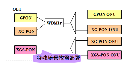 圖3 GPON與XG-PON通過雙模PON口(光模塊)共存