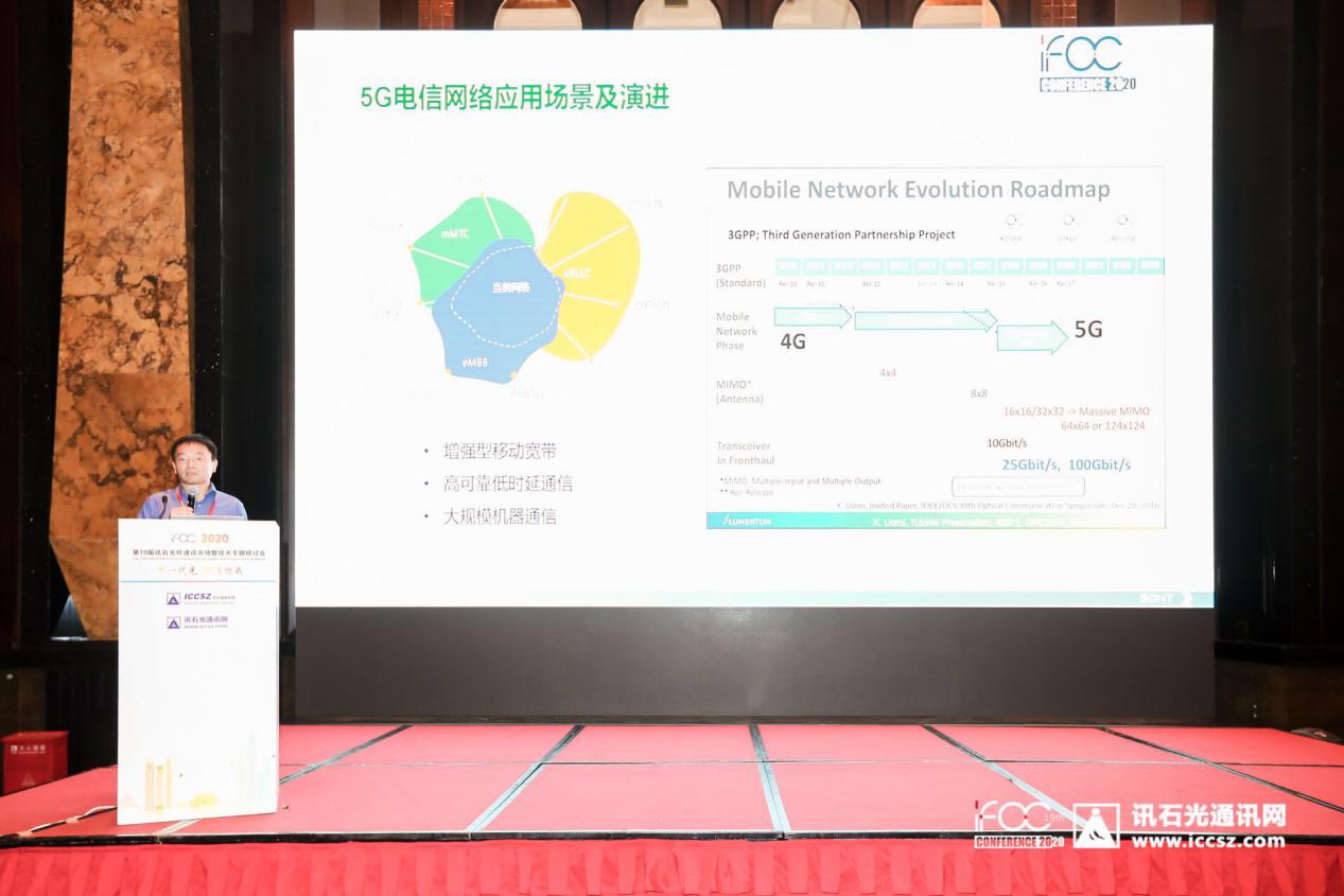 ICC訊 (編輯:Nicole) 9月7日,第19屆訊石光纖通訊市場(chǎng)暨技術(shù)專(zhuān)題研討會(huì)(IFOC 2020)隆重召開(kāi),國(guó)內(nèi)運(yùn)營(yíng)商市場(chǎng)領(lǐng)先的光模塊供應(yīng)商——深圳市迅特通信技術(shù)有限公司(以下簡(jiǎn)稱(chēng):迅特通信或SONT)首席技術(shù)官魏志堅(jiān)博士作主題演講《從市場(chǎng)需求看5G前傳方案發(fā)展趨勢(shì)》,介紹迅特通信5G前傳解決方案最新進(jìn)展,并從5G電信網(wǎng)絡(luò)應(yīng)用場(chǎng)景、5G光通信網(wǎng)絡(luò)架構(gòu)等方面切入,介紹5G前傳連接技術(shù)及5G前傳系列方案。