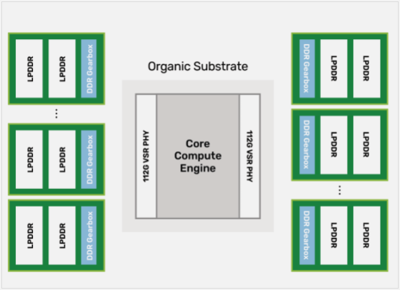 他表示,過去解決這一問題的方法是在推理IC周圍的大型基板上放置LPDDR內(nèi)存。"這種方法受限于基板上能容納多少內(nèi)存。"最多只能配置16個(gè)內(nèi)存堆棧,容量上限為256GB內(nèi)存和1.3TB帶寬。"最終結(jié)果是芯片的所有接口都被內(nèi)存占據(jù)。"Barnetson說。