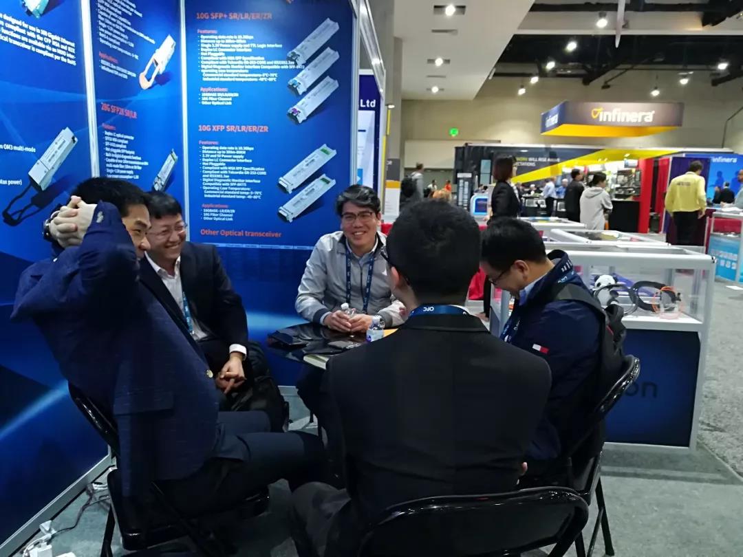 泰瑞創(chuàng)作為光模塊參展商之一,緊跟市場前進的腳步,及時推出40G QSFP+系列/100G QSFP28系列,CFP2系列,產(chǎn)品線十分完善、豐富。參展過程中,公司接待了來自北美、巴西、日本、韓國、臺灣以及國內(nèi)的二十多家設備商、集成商,雙方就技術需求、交付、服務、價格等多方面進行了溝通,以期在未來的激烈競爭中尋求合作機會。