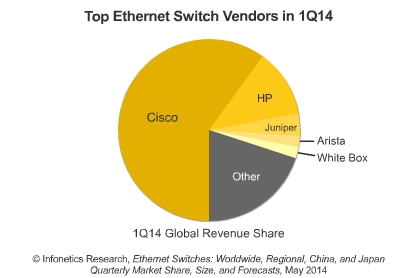 Infonetics企業(yè)網(wǎng)絡(luò)和視頻首席分析師Matthias Machowinski:“2014年一季度,以太網(wǎng)交換機(jī)市場(chǎng)收入急劇下降,由于Juniper 和 Arista強(qiáng)勁增長(zhǎng)不足以抵消思科的弱勢(shì)。而在2013年下半年開(kāi)始制定的積極的增長(zhǎng)勢(shì)頭已經(jīng)停滯。”