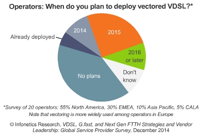 ICCSZ訊(編譯:Nina)Infonetics調查顯示,計劃為住宅用戶提供1G帶寬速度的服務供應商將從2015年的15%上升至2017年的40%。受訪者的用戶中66%使用銅線接入技術,35%使用光纖接入技術,今年光進銅退將更進一步??紤]到部署的成本,一半受訪者還沒有計劃部署或不確定是否會部署FTTdp或G.fast技術。受訪的運營商認為阿爾卡特朗訊是領先的DSL設備制造商,同時阿爾卡特朗訊和Calix(并列)是領先的FTTH設備制造商。