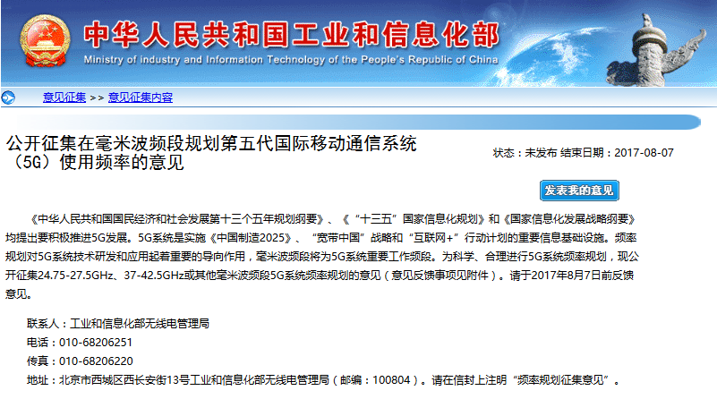ICCSZ訊 今日,工信部正式公開征集在毫米波頻段規(guī)劃第五代國(guó)際移動(dòng)通信系統(tǒng)(5G)使用頻率的意見。