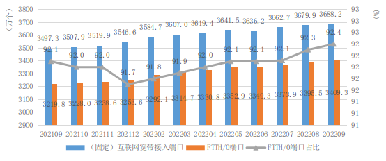 截至9月底,福建省固定寬帶接入端口達(dá)3688.2萬(wàn)個(gè),同比增長(zhǎng)5.5%。其中,光纖接入(FTTH/O)端口3409.3萬(wàn)個(gè),占比92.4%。具備千兆網(wǎng)絡(luò)服務(wù)能力的10G PON端口達(dá)38.5萬(wàn)個(gè),比上年末增加10.5萬(wàn)個(gè)。