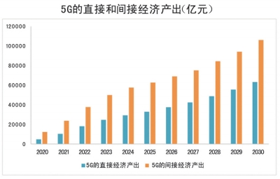 ICCSZ訊 中國(guó)信息通信研究院發(fā)布的《5G 經(jīng)濟(jì)社會(huì)影響白皮書》預(yù)測(cè),2030 年5G帶動(dòng)的直接產(chǎn)出和間接產(chǎn)出將分別達(dá)到6.3萬(wàn)億和10.6萬(wàn)億元。在直接產(chǎn)出方面,按照2020年5G正式商用算起,預(yù)計(jì)當(dāng)年將帶動(dòng)約4840億元的直接產(chǎn)出,2025年、2030年將分別增長(zhǎng)到3.3萬(wàn)億、6.3萬(wàn)億元,十年間的年均復(fù)合增長(zhǎng)率為29%。在間接產(chǎn)出方面,2020年、2025年和2030年,5G將分別帶動(dòng) 1.2萬(wàn)億、6.3萬(wàn)億和10.6萬(wàn)億元,年均復(fù)合增長(zhǎng)率為24%。
