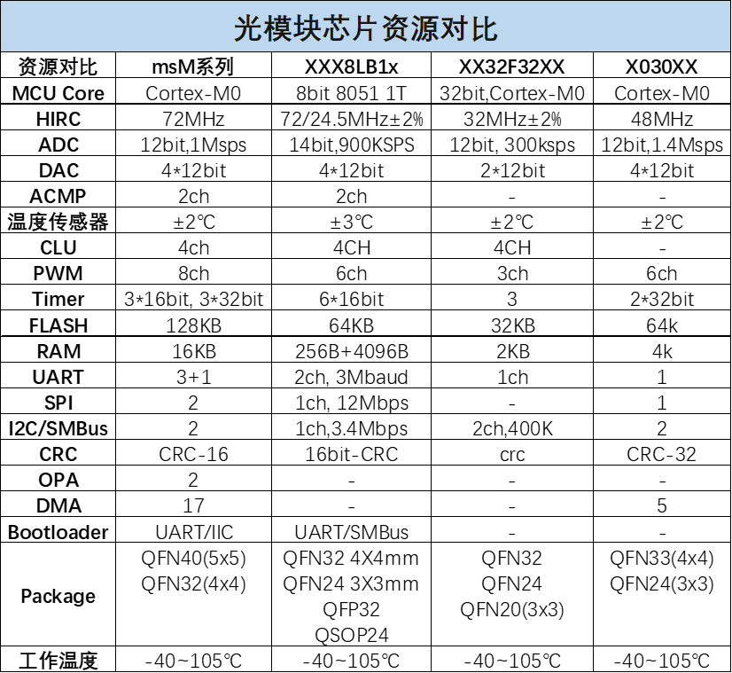 ICC訊 5G時(shí)代的到來(lái),光模塊在日常生活中的普及程度越來(lái)越高,常見(jiàn)智能電網(wǎng)、5G基站、安防監(jiān)控、光纖路由器等都是基于光模塊來(lái)進(jìn)行通訊的。光模塊中對(duì)負(fù)責(zé)底層DDM模擬量監(jiān)控的MCU要求極為嚴(yán)格,數(shù)據(jù)的傳輸速率僅僅是快和精準(zhǔn)是無(wú)法滿足要求的,需要更高抗干擾性和穩(wěn)定性。