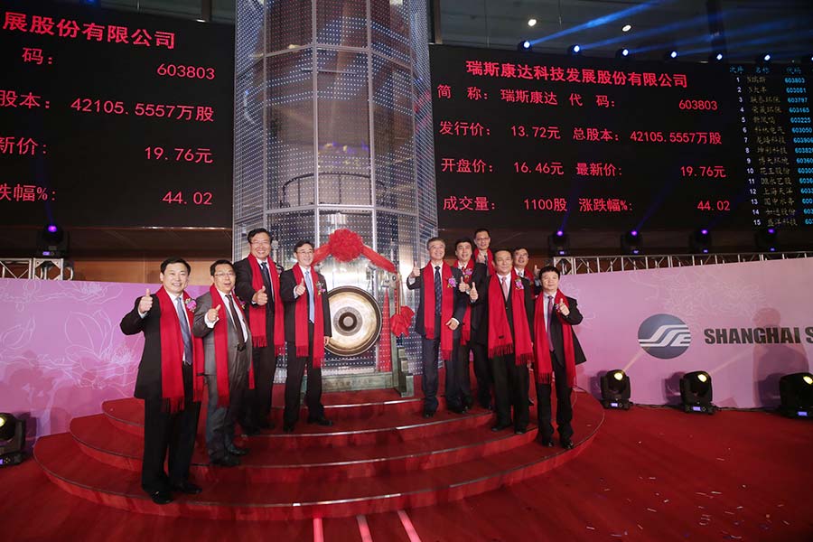 ICCSZ訊(編輯:Joy)瑞斯康達(dá)科技發(fā)展股份有限公司股票于2017年4月20日在上海證券交易所A股上市,股票簡稱“瑞斯康達(dá)”,股票代碼“603803”,首次公開發(fā)行股票數(shù)量5680.00萬股,公開發(fā)行后的總股本42105.5557萬股。發(fā)行價格:13.72元/股,發(fā)行首日大漲44.02%,收盤價19.76元。