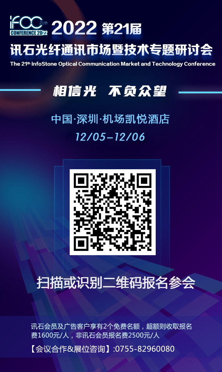 ICC訊 2022年12月5-6日,第21屆訊石光纖通訊市場暨技術(shù)專題研討會(huì)(The 21st Infostone Optical Communication Market and Technology Conference,簡稱“IFOC”、“訊石研討會(huì)”)邀您共聚深圳機(jī)場凱悅酒店(地址:深圳市寶安國際機(jī)場空港八道8-12號(hào)),從七大專題深入探討覆蓋整個(gè)光通訊市場的全面內(nèi)容,層層遞進(jìn)式分析技術(shù)發(fā)展趨勢,深度融入熱點(diǎn)話題為行業(yè)發(fā)展注入新鮮力量。