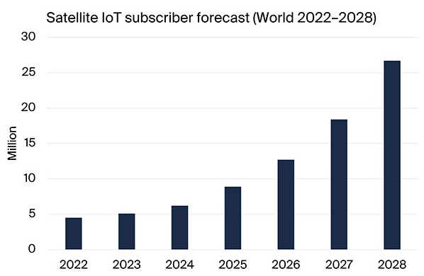 圖1 2022~2028年全球衛(wèi)星物聯(lián)網(wǎng)用戶增長(zhǎng)趨勢(shì)