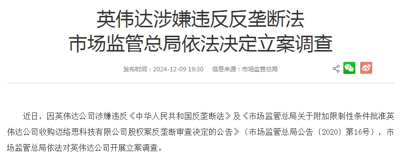 涉嫌違反反壟斷法 英偉達(dá)被立案調(diào)查